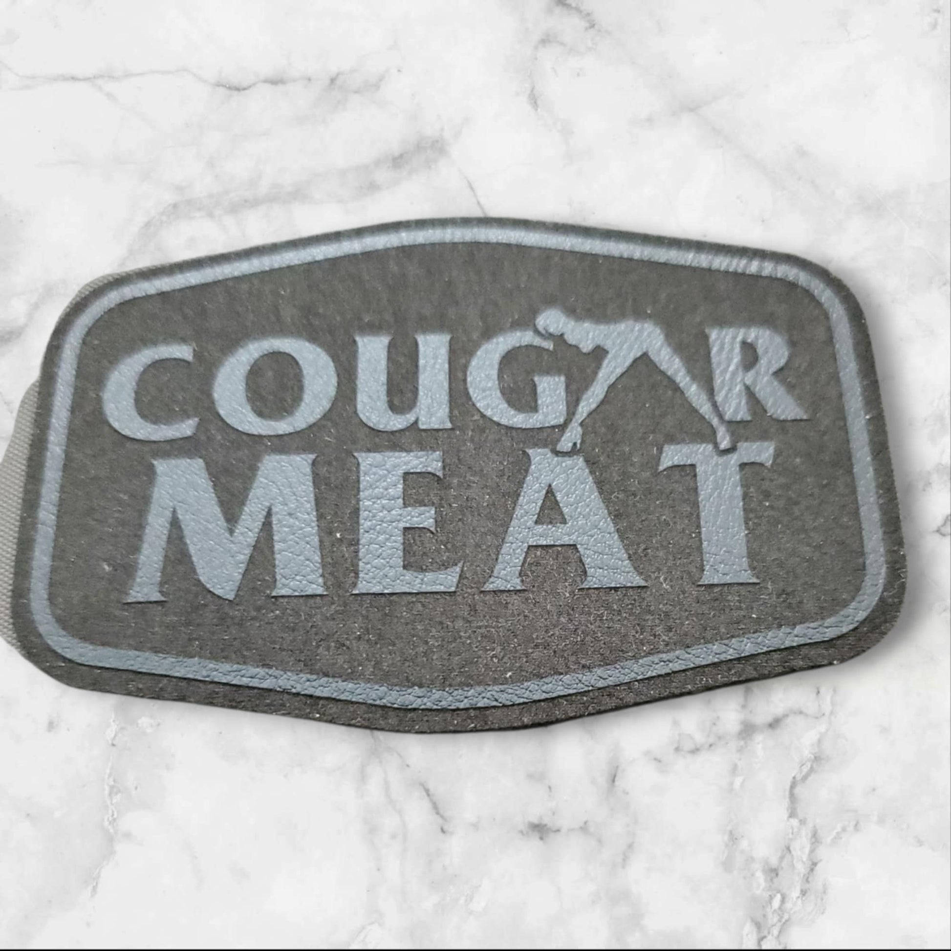 Make a bold statement with this unapologetically fierce "COUGAR MEAT" leather patch.