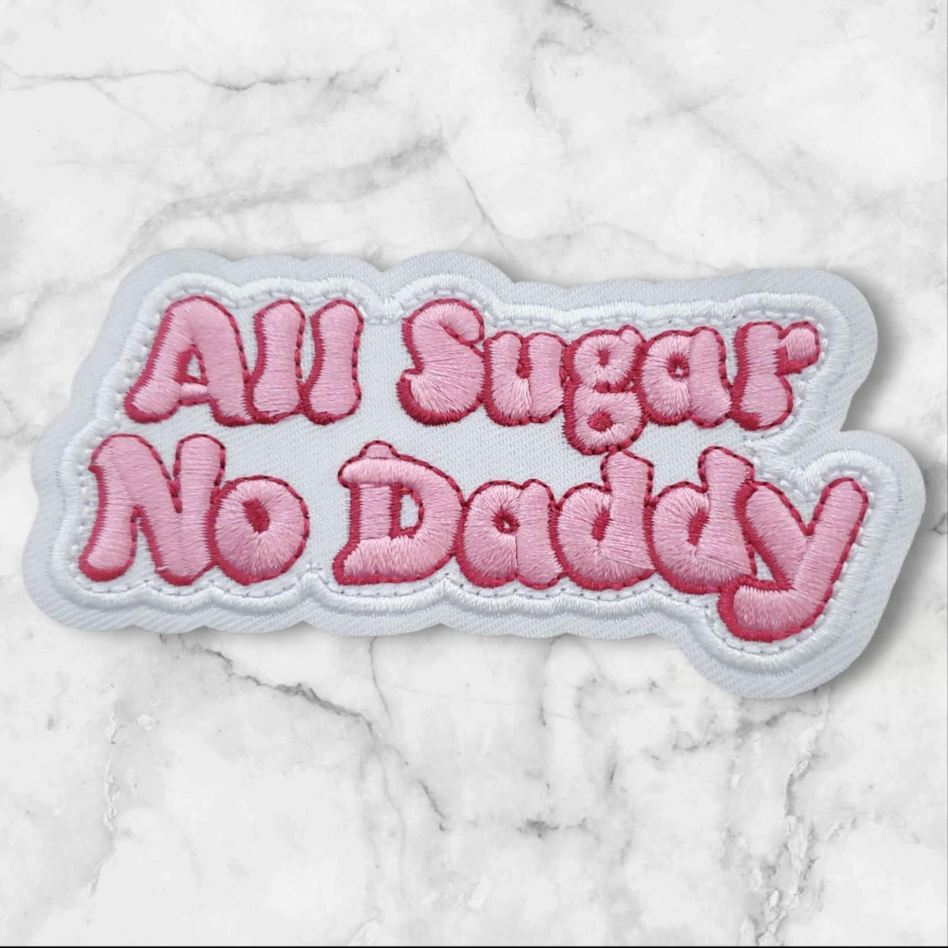 White & Pink Embroidered Patch – “ALL SUGAR NO DADDY”